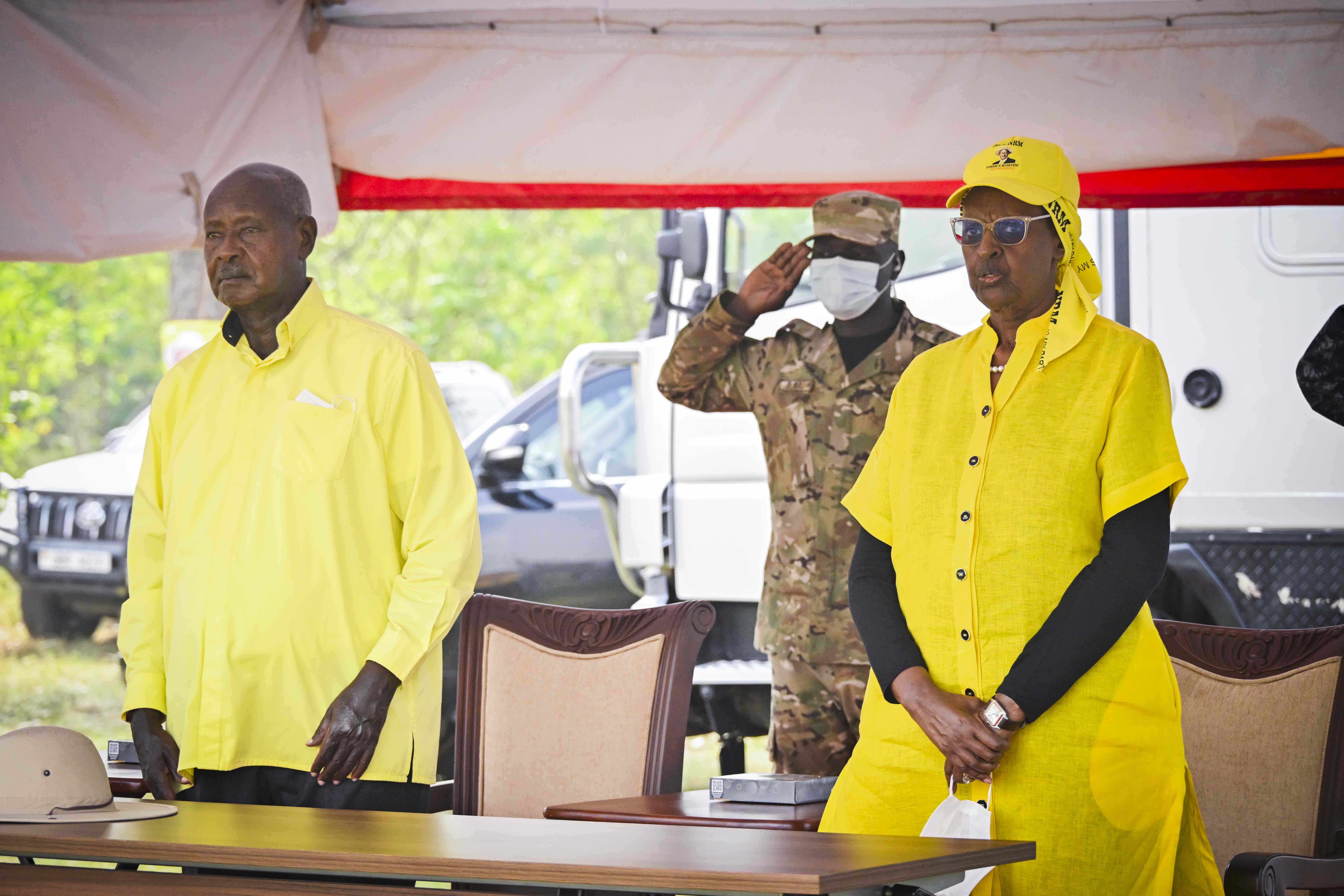 The President was accompanied by the First Lady and Minister of Education and Sports, Maama Janet Kataaha Museveni, together with senior NRM and local leaders at Kyenzanza Community Playground in Rubirizi District.