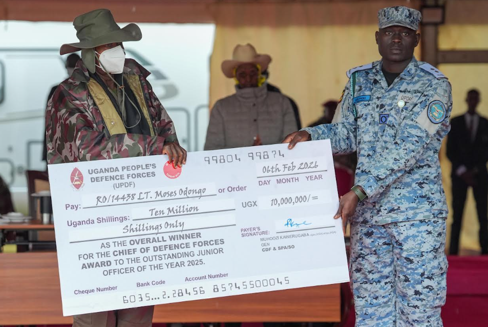 Lt. Moses Odongo also emerged winner of the inaugural CDF award for the outstanding junior officer for the year 2025 and he was given Shs 10 million as well as a certificate.